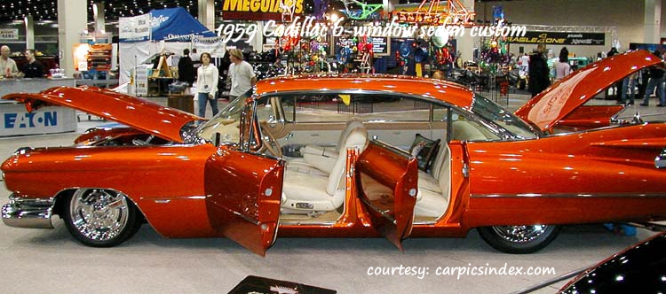 Many consider the ’59 Cadillac as the most outrageous statement of the age of chrome and tail fins ever dreamed up. That makes them a good source for customs – since little needs to be done to alter the original, save a special paint job, wheels, maybe some de-chroming.