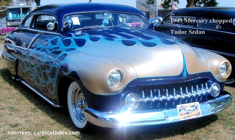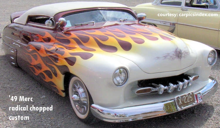 Shoebox Fords (including Mercurys and Lincolns) – Somehow, the early focal points of custom projects were the “shoebox” generation of Fords and Mercurys (sorry, no explanation found for where the nickname originated). These were not necessarily more streamlined than the competing designs from GM, Hudson, Nash, or Studebaker (they were sleeker than Chrysler products in those years, however). Possibly because of the hot rod legacy of the Ford flathead V-8, they came to dominate the custom field. While the Ford body designs evolved in the fifties (and the flathead engines were consigned to history), the custom builders’ loyalties to Ford remained.