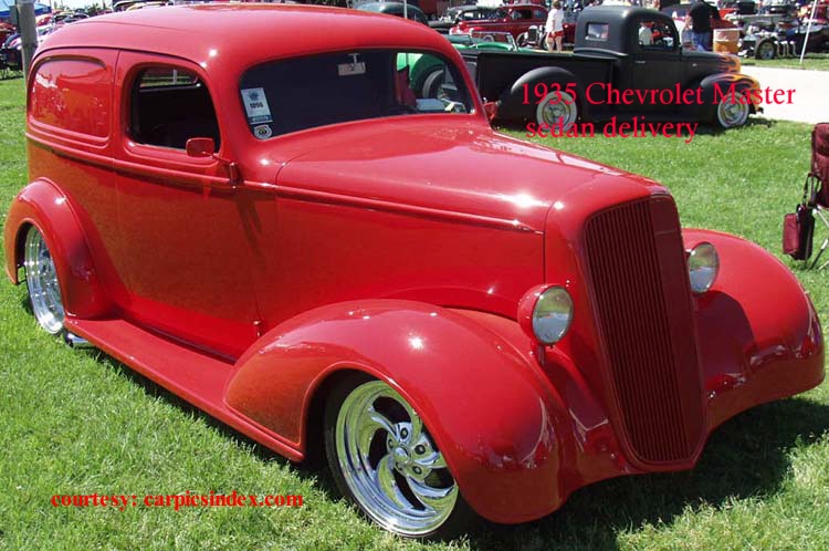 Although never as popular with the hot rod and custom demographic as early Fords, the other sales leaders of the thirties, Chevrolet and Plymouth, also have received some attention over the years. Here’s a great example of a “chopped” custom sedan, a ’34 Plymouth, and a Chevrolet sedan delivery from 1935.