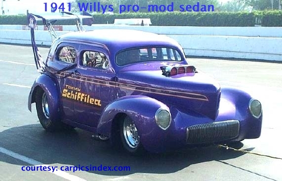 Later, the popularity of a variety of custom “street rods” forced the NHRA to add other classes to accommodate these customs – they were known as pro-street, pro-comp, or pro-mod. As with the earlier “gassers,” there were no restrictions on engine or drive train modifications. Pro-street machines were allegedly “street-legal,” but, otherwise, anything was allowed.
