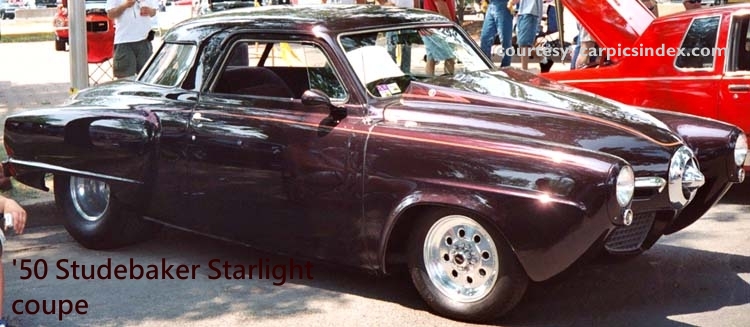 The Loewy Studebakers, Step Down Hudsons, and Nash– Raymond Loewy was the designer responsible for the very first “new look” postwar car: the 1947 Studebaker. No front fenders were visible on lower body, which entirely enclosed frontal area – and, only vestigial traces of a rear fender line (see the 1950 Stude pictured here).