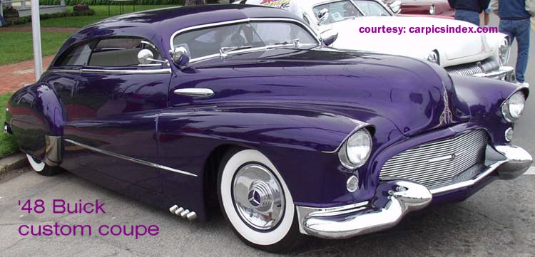 GM, and Harley Earl – The forties belonged to General Motors. It’s chief designer, Harley Earl, created a classic look eventually shared by all GM bodies – pontoon fenders which, after ’41, included part of the front door (on ’42-’48 Buicks, front fenders presented a continuous ridge all the way to the rear skirted pontoons). The fastback, or “torpedo,” body style in either 2-door or 4-door versions was all the rage. Their elegant lines have been a favorite among classic collectors, as well as customizers – as seen in these examples.