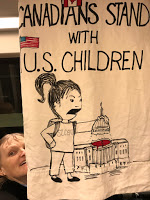Her hand-painted sign for the March read “Canadians Stand with U.S. Children.” It was painted on a pillowcase by a friend. She claims that even in childhood she was outspoken – “listen to me!” “I’m special!” – she thanks her parents for much of her activism. The Turner diagnosis simply gave her more of a focus. Her husband’s struggle added to it. Now, she is convinced that she does matter – she can do much, she can instruct, she can share her strength and her resolve. She can create her own platform by shouting at demonstrations and writing angry emails. Her message, delivered wherever she can get a platform, consists mostly of: “there are many of us,” and “let me be your voice” – our rights are no fewer than others’ – and, we are eager to form alliances with other marginalized groups. We need to be “in your face” more, not less!