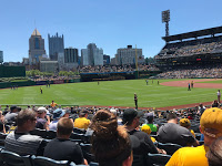 The hotel lies directly across the street from Mellon Square, a picturesque be-fountained park on multiple terraced levels. Market Square is also nearby with its live music and vendor stalls. But downtown doesn’t have quite the panache of the cultural district or Oakland to the northeast, or Squirrel Hill with its dignified air of Pittsburgh urban upper middle class. Those neighborhoods had become our stomping grounds a decade earlier during the college years. The hotel was an easy walk across Roberto Clemente Bridge to PNC Park for the baseball game on Sunday against the San Diego Padres.