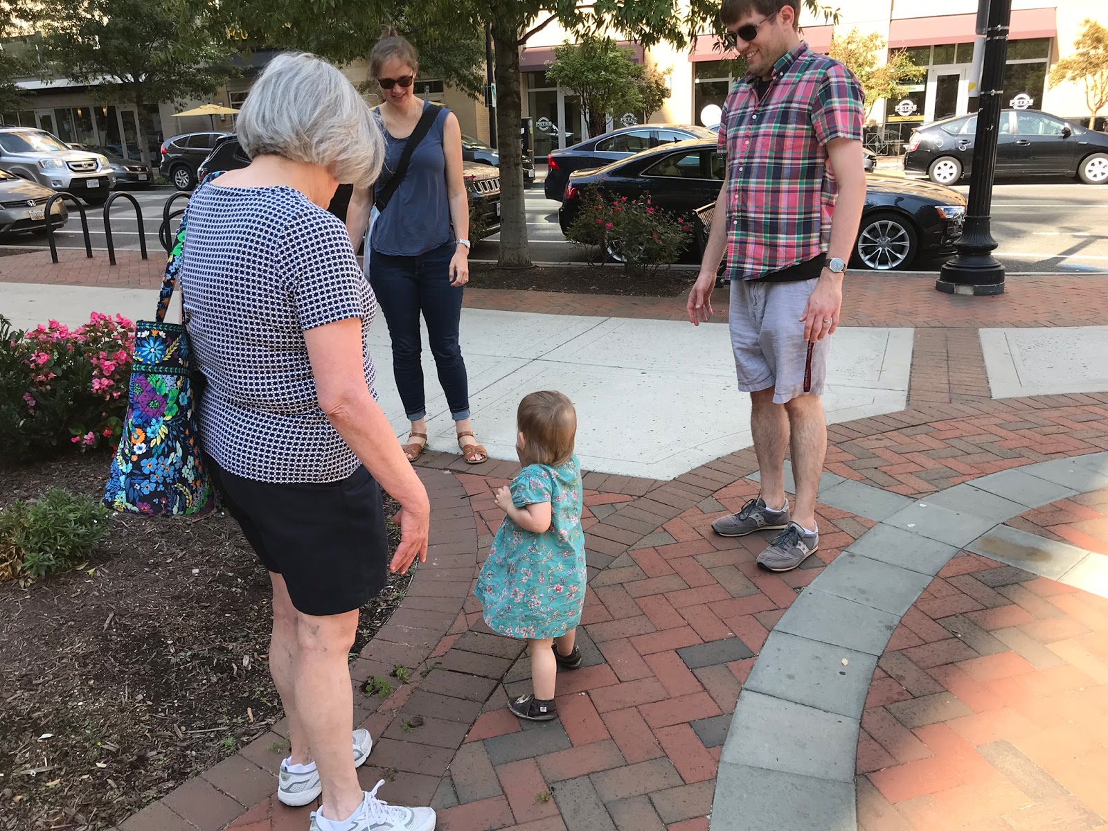 As grandparents not charged with primary care for these two, we have the best of both worlds. We see them and interact regularly, but then can always send them home with their parents. We welcome them at our house, providing accommodations like training potties, highchairs, car seats, step stools, as the need arises. Plenty of books and toys at our place, too. When we babysit at their house evenings, we’ve learned to nail the bedtime routine for both – as well as feeding them dinner (and playing together). But we’re never required to spend more than a few hours devoted to their care. This is good for septuagenarians.