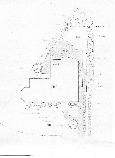 After we finished work on our second addition (2009), incorporating a large kitchen with master suite above it, more or less swallowing up our backyard, we hired a local landscaping company to give us a usable hardscape patio and walkway from our new addition around to the driveway. Plantings front and rear, and river-stone-filled driveway median completed the plan.